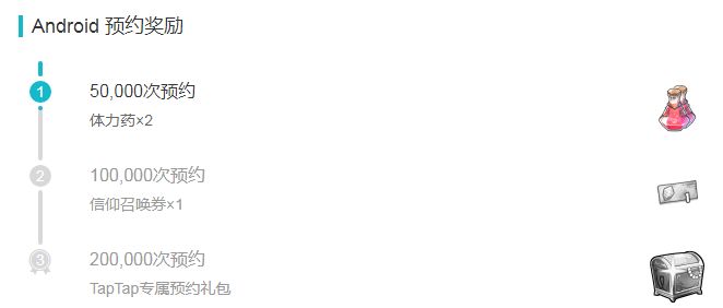 第一阶:预约数量达到5w人预约玩家即可获得:体力药2瓶