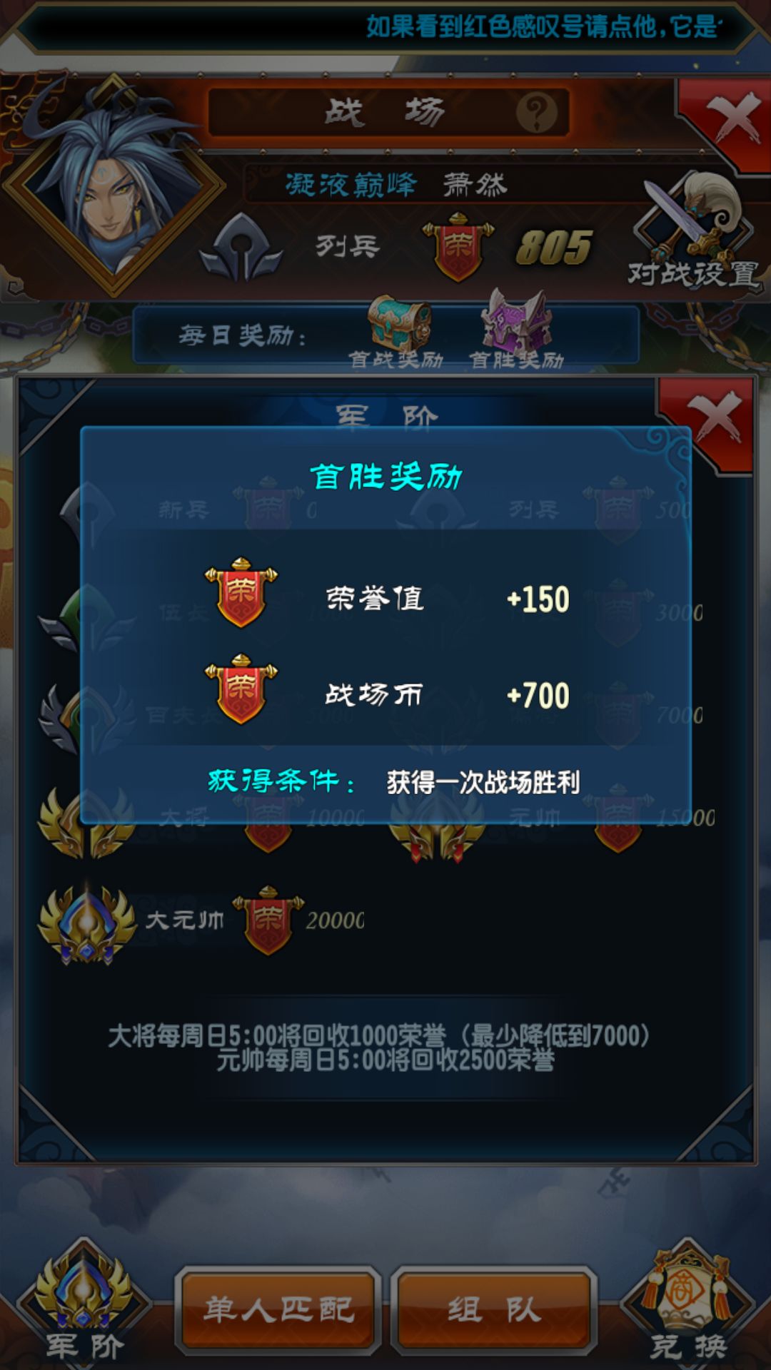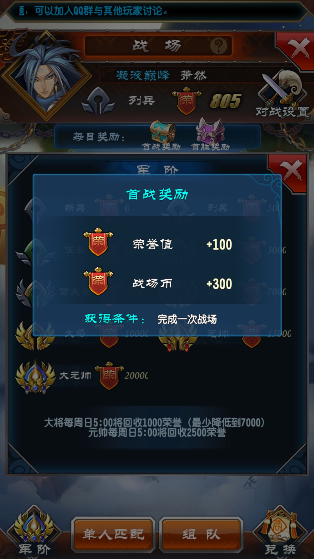 不能领战场奖励哦,第一次参见战场。