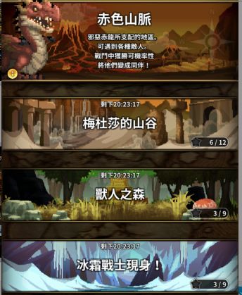 这里的关卡通关之后有概率获得相应的山脉卡片