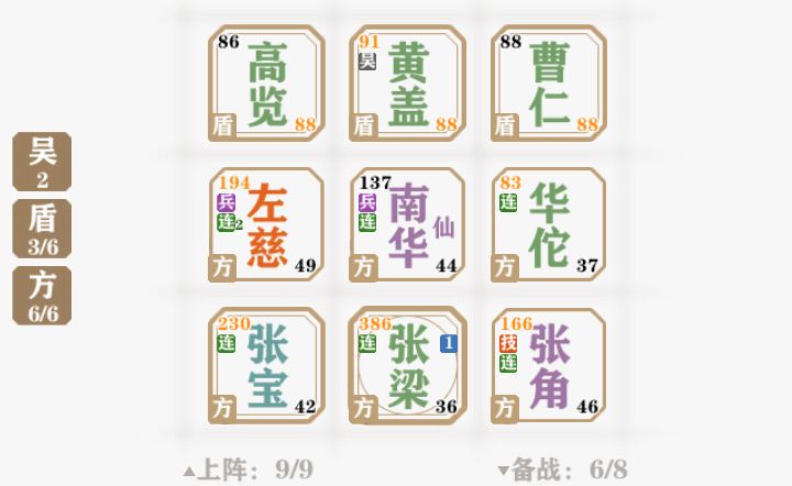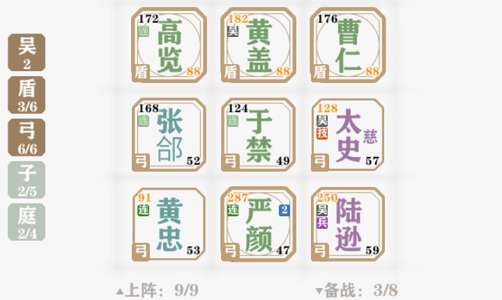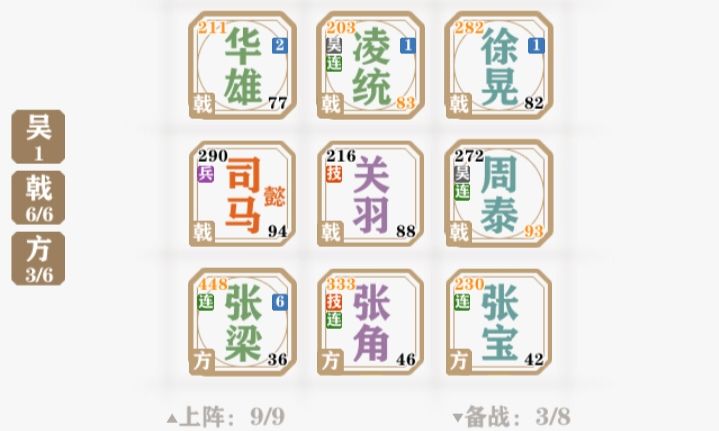 2、九宫格。一共三行。每一行的放置原则(高攻击力放前面、低攻击力放后面)