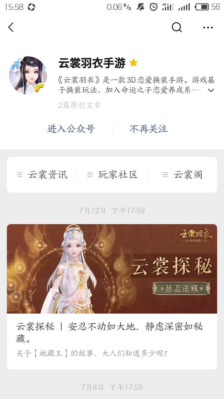 微信公众号:云裳羽衣手游