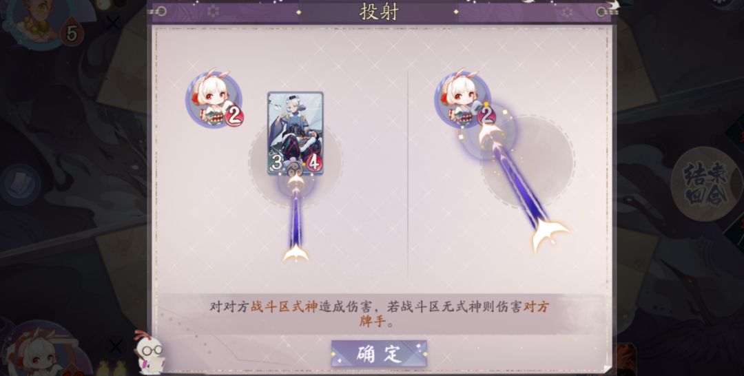 1、我们需要明白“投射”的伤害机制,若敌方战斗区有式神,那投射伤害会作用于战斗区式神,若战斗区无式神则会直接对敌方牌手造成伤害,弄懂“投射”的伤害机制才能学会在对战中运用它。