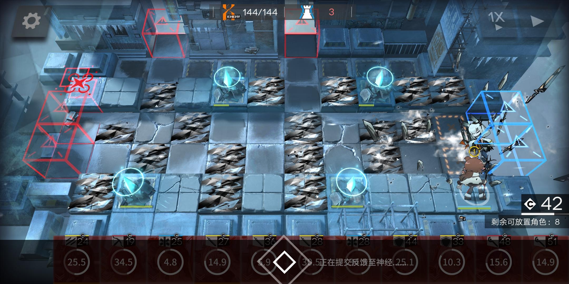用新干员拿出来打打新图,煌作为对aoe的特化干员表现还是很强眼的,打h6-4比较值得注意不要让霜星贴到自己的大部队是很重的=-=,下图是被贴到的后果(残血反杀)。