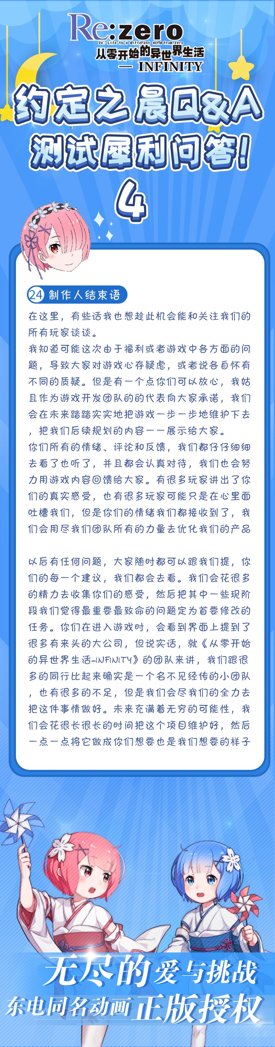 以下是兔子关于此次制作人直播问答的总结,有点长噢!错过直播的小伙伴可以来补信息点啦!最后,祝大家感恩节快乐,《从零开始的异世界生活-INIFNITY》感谢有你!