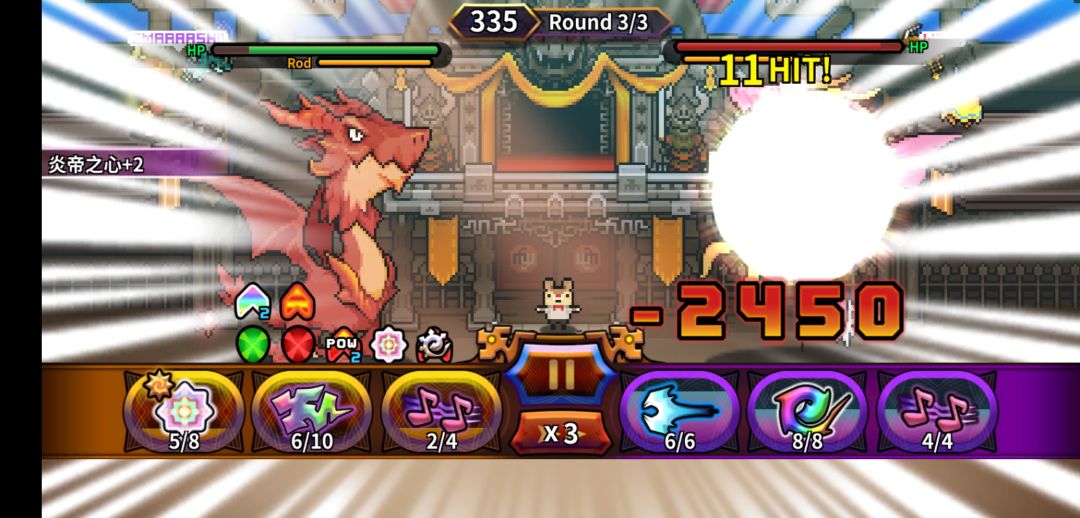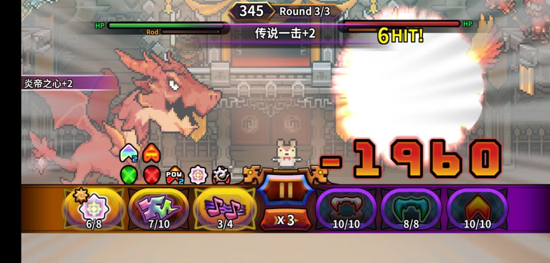其次,为了最大化龙息的伤害,技能方面带炎帝之心,双减cd,还有攻击400,除了传说另外两个技能带锁定和龙之歌,锁定在获得必中buff的同时,还能给你一个攻击力buff,而龙之歌可以将龙息伤害变为一点五倍,开局先给自己套两个锁定一个龙之歌,之后一直按传说一击就行了,一旦龙杖打出来,一口龙息下去,除了洞窟3暴龙,其他龙都是瞬间满血蒸发