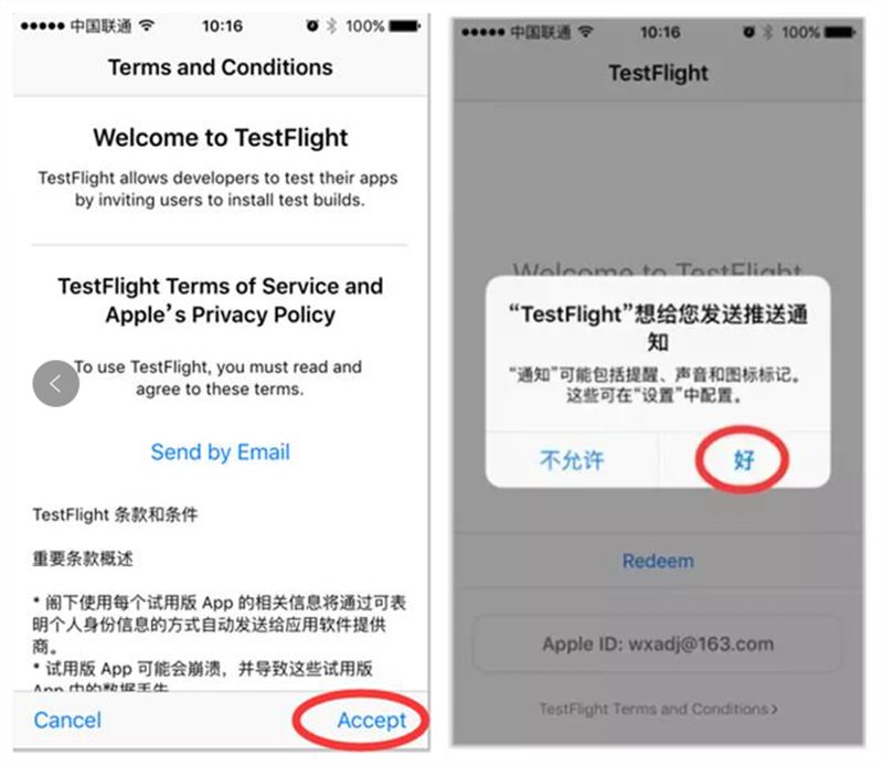 邀请邮件将发送到以激活时所填的Apple ID为账号的邮箱上,请大家使用手机登陆对应邮箱收取邀请邮件。打开邮件后点击“Viewin Testflight”按钮跳转至“TestFlight”邀请码输入页面,点击“Redeem”按钮,输入邀请邮件中的邀请码并下载安装游戏客户端,然后等到游戏开测后进入游戏即可参与测试。