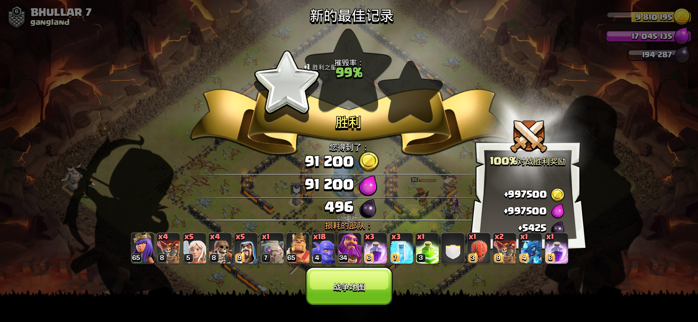 真好,今天部落战打了两个九十九,