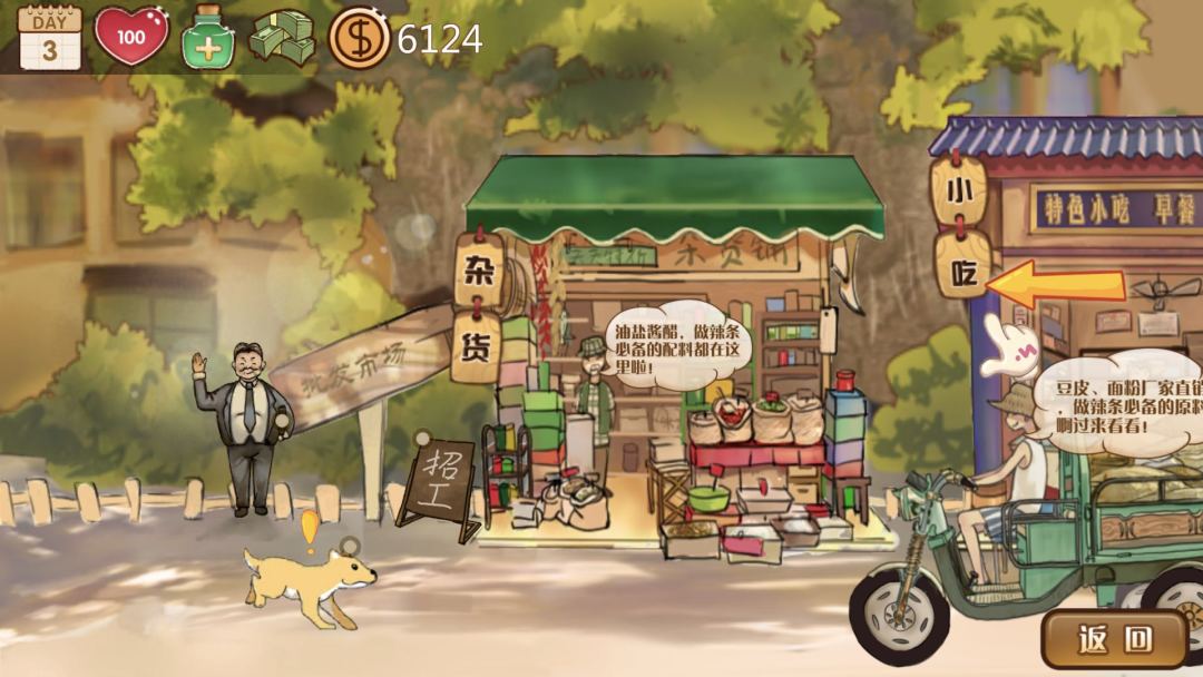 出于对游戏的热爱,来自学生团队的设计师们,开发了这款《辣条杂货店》。金樽青酒斗十千,玉盘珍馐值万钱,这些学生用辣条做了一个游戏梦,唤醒你仰天大笑吃到老玩到老的时光。他们在游戏介绍里这样说:“愿你出走半生,归来仍是少年。”
