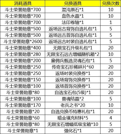 活动内容:活动期间搜集斗士荣誉勋章,即可兑换新品传奇宝石等丰厚奖励,详情如下: