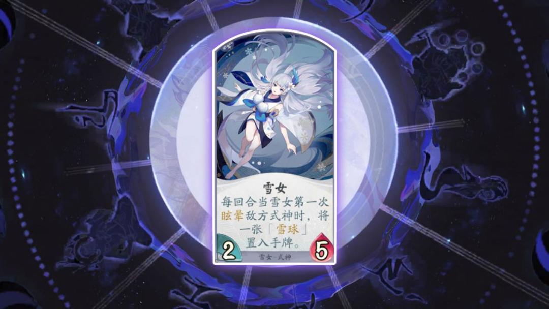 卡牌效果:法术牌,卡牌效果是雪女获得觉醒能力,觉醒后雪女对式神造成伤害时,眩晕该式神