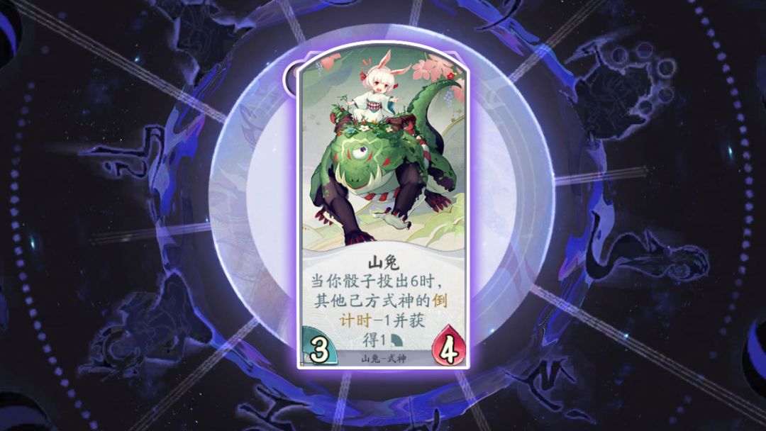 基础属性:当你骰子投出6时,所有己方式神-1倒计时并获得1点力量(山兔的一些卡牌在使用时会投出一个六面骰子)