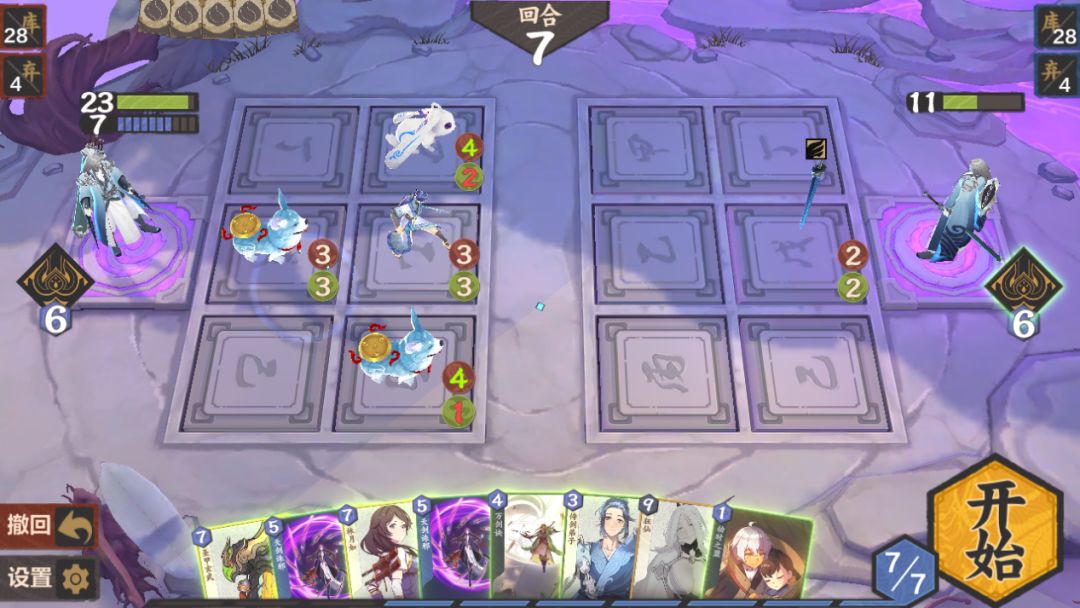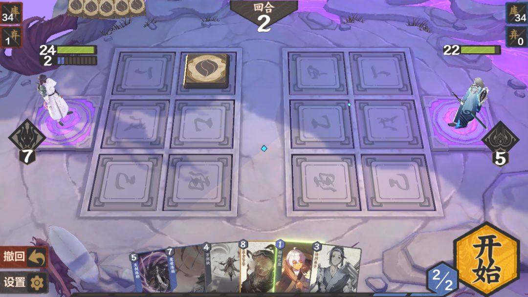 换好了手牌之后,我们就正式进入对战了。天梯对局就是双方斗智斗勇的过程。因此我们要先熟悉基本的战斗流程。九野是回合制的游戏,但是九野之中的回合不是交替进行,而是同时进行的,这就意味着在开始之前的布局将会直接影响到战斗的结果。