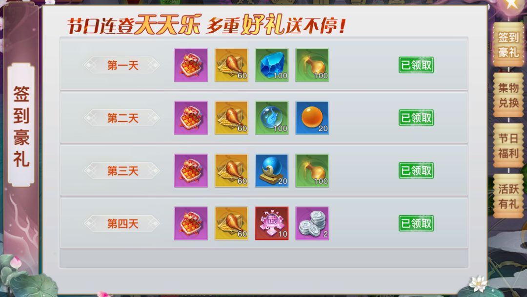 注:以下四重福利,活动内容以游戏内为准