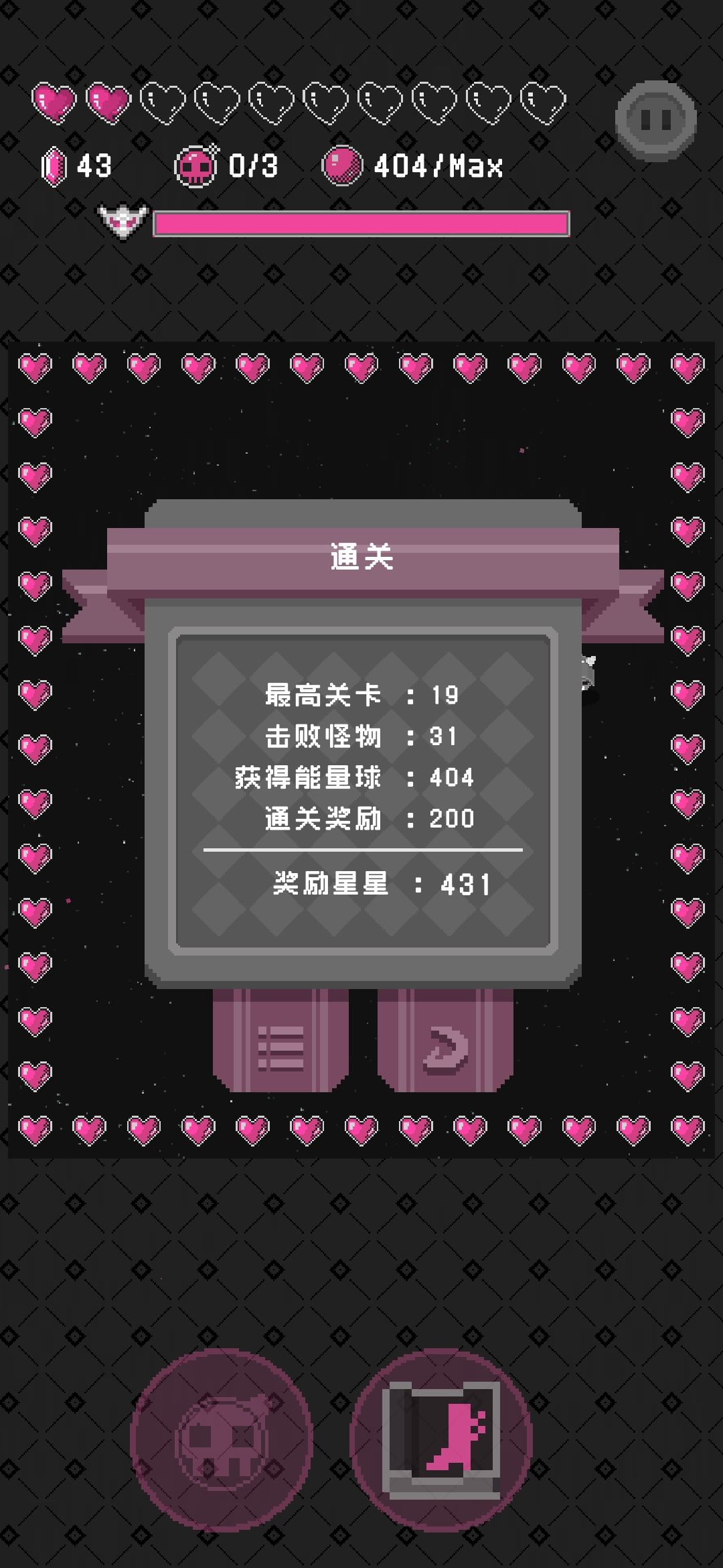 Boss怎么打?我没看视频自己打了一次就明白了,第一个是跟boss抢黑色的蛋?反正吓不死,用技能也死不去,捡着捡着蛋boss就死了,第二个就是捡黑色的球,每捡三个就有一把剪刀,捡了boss就少一根刺,把刺剪完就赢了,最后一个boss就是捡圣剑,拿到圣剑就会自动放波,打心脏就行了,打到死。目前只见过这三个boss,没了!