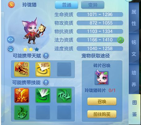接下来让我们看看玲珑猫的携带技能都有那些?