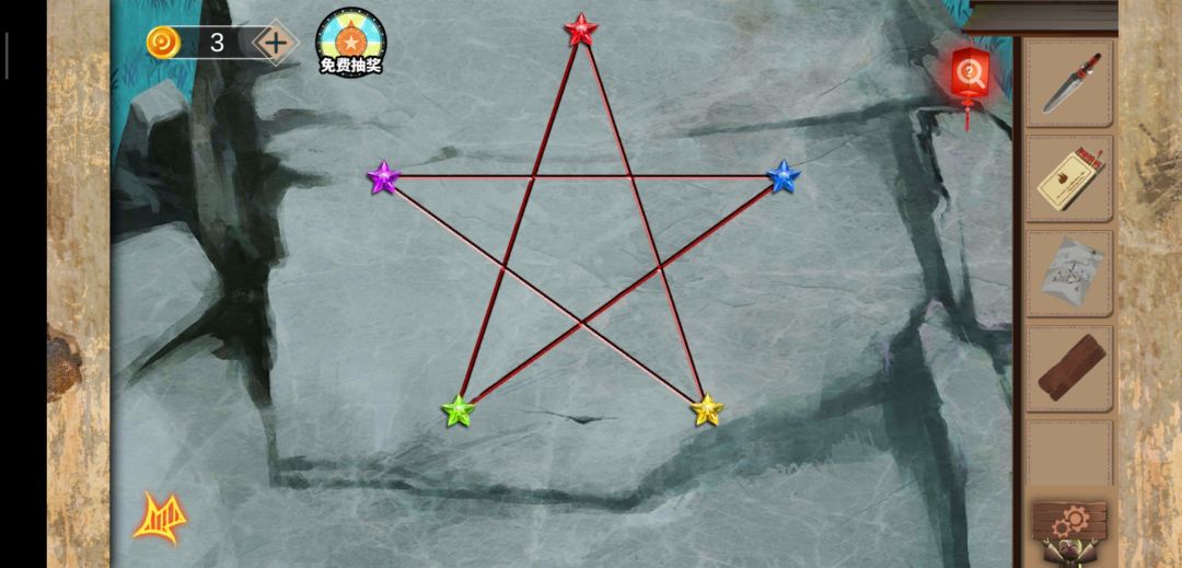 五角星,中间的五角星是可以点的,点了之后才会触发谜题,谜题是根据出现的颜色去点星星的位置,别看图点,去找提示