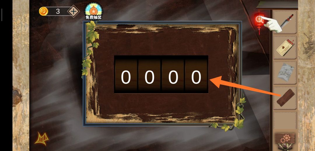3盒子,盒子的内容和捡到的木片有关系,这个木片上面的四个图案有几个接线,就代表数字几,如果不对,说明有地方输错了,多试一下,第一个数字是9