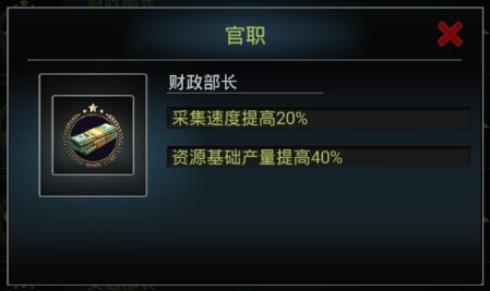 联盟战胜利的一方除了全员可以在邮箱里获得一份丰厚物资奖励以外,还有若干个官员位置可以设置,总统可以任命官员,不同官职享受独特的强力加成。官员必须是本联盟的R4成员才能担任。