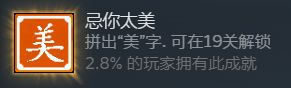 成就目标:第十九关拼出“美”字。