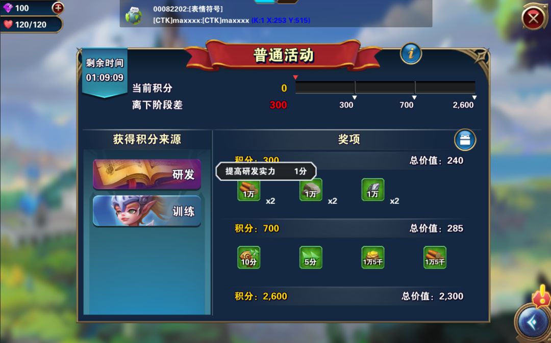 对于萌新,前期想要快速发展,获得大量的道具和资源是必不可少的。活动是获取资源很重要的一个途径,达到分数便能获得大量奖励。