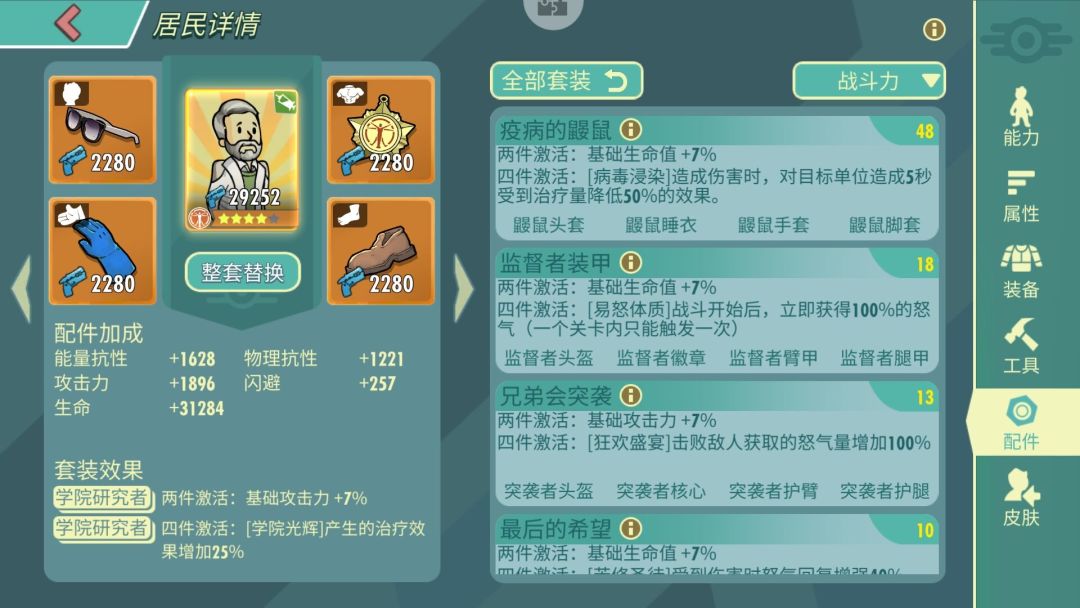 最适合圣父的还是学院套装,学院加强后2+2退出了历史舞台,配件以血攻为最佳,如果随机词条未有血+攻的,建议按照队伍实际情况进行搭配,建议沙拉血量最低,保证圣父不是最低血量即可。(防止对面狙击)