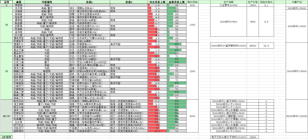 1.只有MR和SP魂器有两个技能,其他品级的魂器我在技能2里给出了建议,特殊表示技能特别,应该培养一个,高资可留表示高资质的可以暂时使用替代MR和SP魂器。