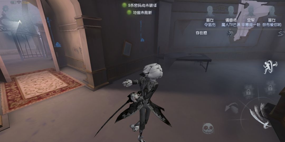 1,场景里有照相机,点一下会照相,可以穿过那个类似于屏幕的东西进入镜像世界。相中世界里求生者是不会动的,你把他们挂上椅子,现实中的对应求生者在镜像结束后就会倒地。一节技能可以在镜像和现实之间穿梭,二阶技能可以瞬移,这个后面会讲。