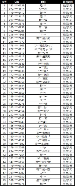 在游戏客服平台收集整理玩家的举报,并通过游戏最新的安全机制进行了审查核实。我们发现部分御灵师通过非法游戏的行为破坏游戏环境,严重影响了大家的游戏体验。核实名单由游戏安全团队进行了封禁处罚,封号后将会强制撤出所有占领擂台的妖灵。为表明我们打击非法游戏行为的决心,特此将部分举报查实处罚名单进行公示。