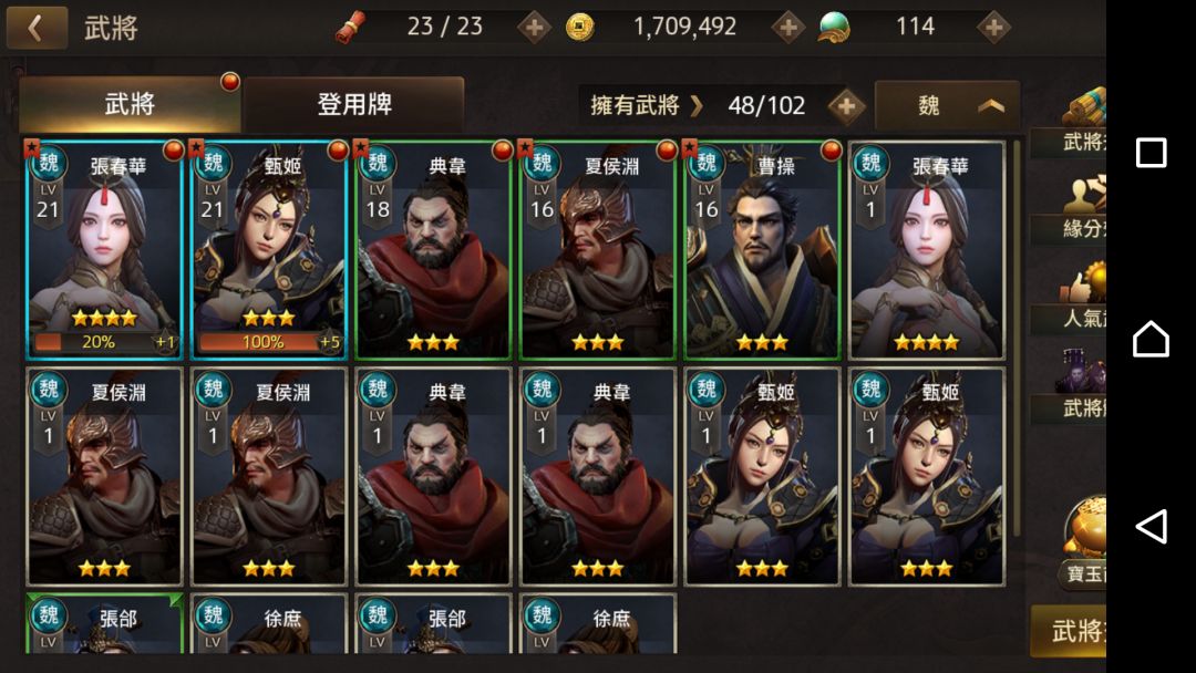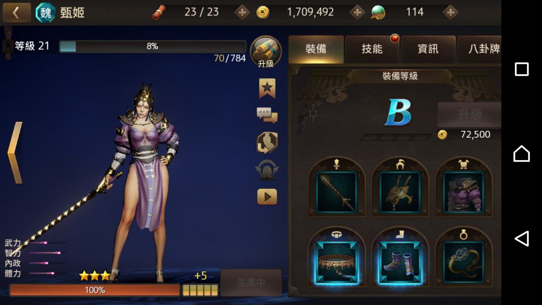 三星武将晋级经验已满但不能升星一直显示生产中?人物等级21,装备B,有相同的1级武将,这是BUG?主城6级