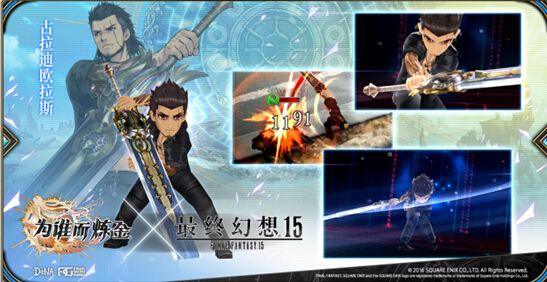 此次联动中,《最终幻想15》的人气角色全员登场,包含主角【诺克提斯】、三位伙伴【伊格尼斯】、【普隆普特】、【古拉迪欧拉斯】、女龙骑士【阿拉尼雅】,炼金术师们可以通过联动副本、召唤等形式来获取联动英灵与专属武具。