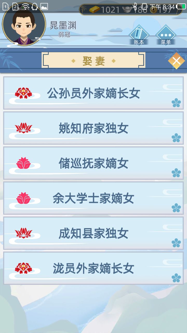 用这幅图举例,确定两个娶妻标准。一、娶嫡长女和独女相比同大都等级的妻子属性更高,嫁妆更多,大概以下排序(按嫁妆、平均属性计算)①嫡长女②独女③嫡女④庶女⑤私生子二、娶职位更高的人的女儿,和上面同理,嫁妆、平均属性更高①、大学士②(其他所有职业最高级别)但是(划重点)你不一定娶得到大学士的嫡女,娶到的时候多半年龄三十几了,建议在解元的时候娶二、②➕一、①或者一、②