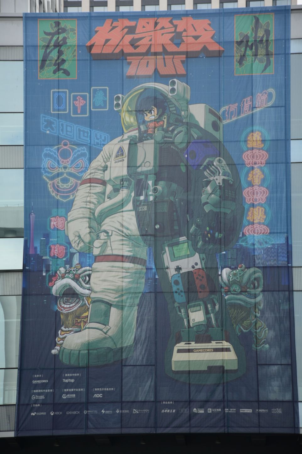 挂在广州保利世界贸易中心的醒目海报,一进园区就感受到了核聚变的氛围。