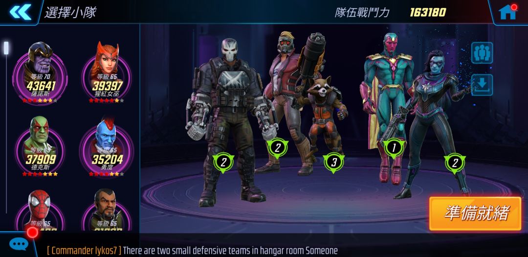 核心是幻視的科技系開場增防2回合,可以大幅減少第一波攻防的損傷。另外浣熊和鋼鐵人也有針對科技系的強化,基本上帶科技綴字的都能放進隊