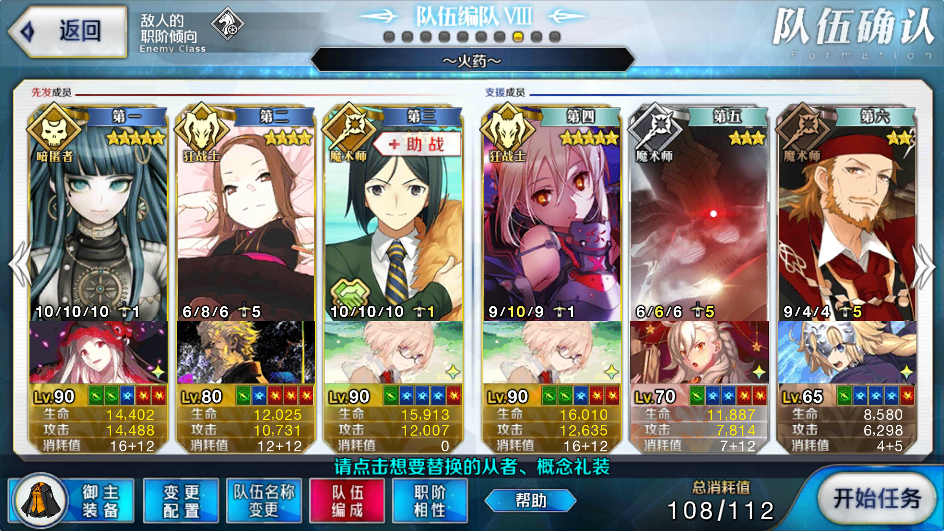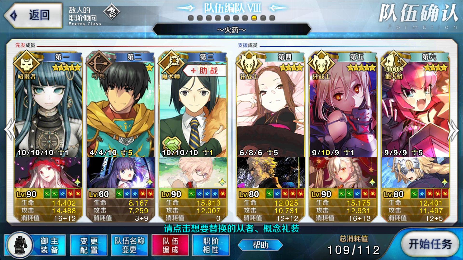 同上,艳后礼装可选其他,此阵容茶茶可换杀师匠