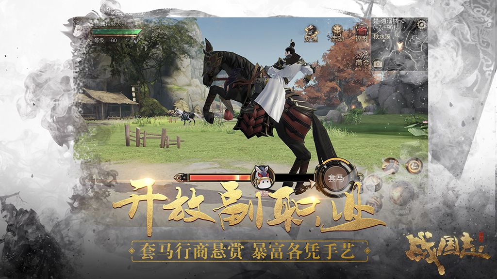 此外,在职业设定上,《战国志》除了提供各具特色的兵谋、墨弓、鬼谷、素心、破军五大门派外,还设计了开放的副职业系统,包括侯爵、统帅、巧匠、马监、游侠等。各位将军在选择主职业的同时,还可根据自己的喜好选择不同的副职业多面发展,或加官进爵、封侯拜相;或成为养马达人,和爱骑共同作战,踏遍大好河山。