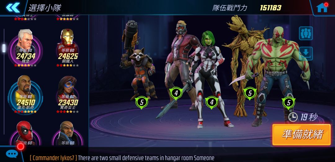這隊沒拆buff續航力又不佳,第一波攻勢沒打出優勢還挺容易被磨死的......戰力沒撐高不好用。不過單獨拆出兩三人使用還不錯,星爵/浣熊能沿用到科技隊