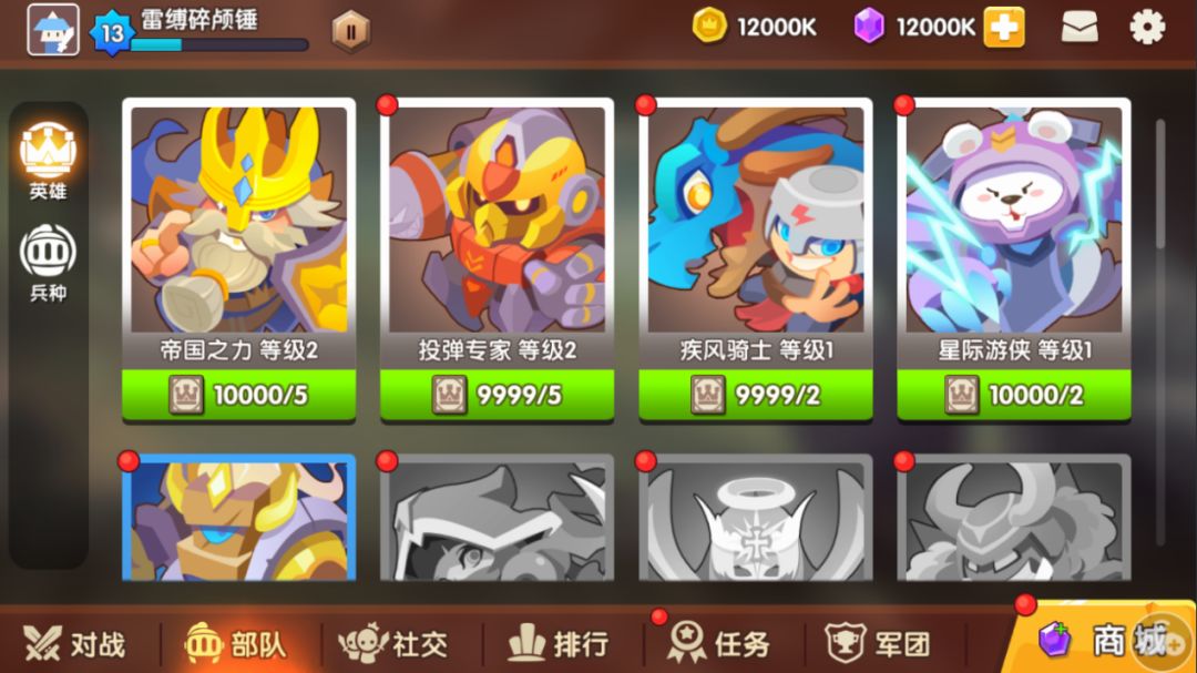 在之前,指挥官必须不断提高段位,才能解锁相对应的兵种。这样就导致了即使拥有很多好玩又强力的英雄/小兵,我们段位达不到的话也只能望梅止渴。