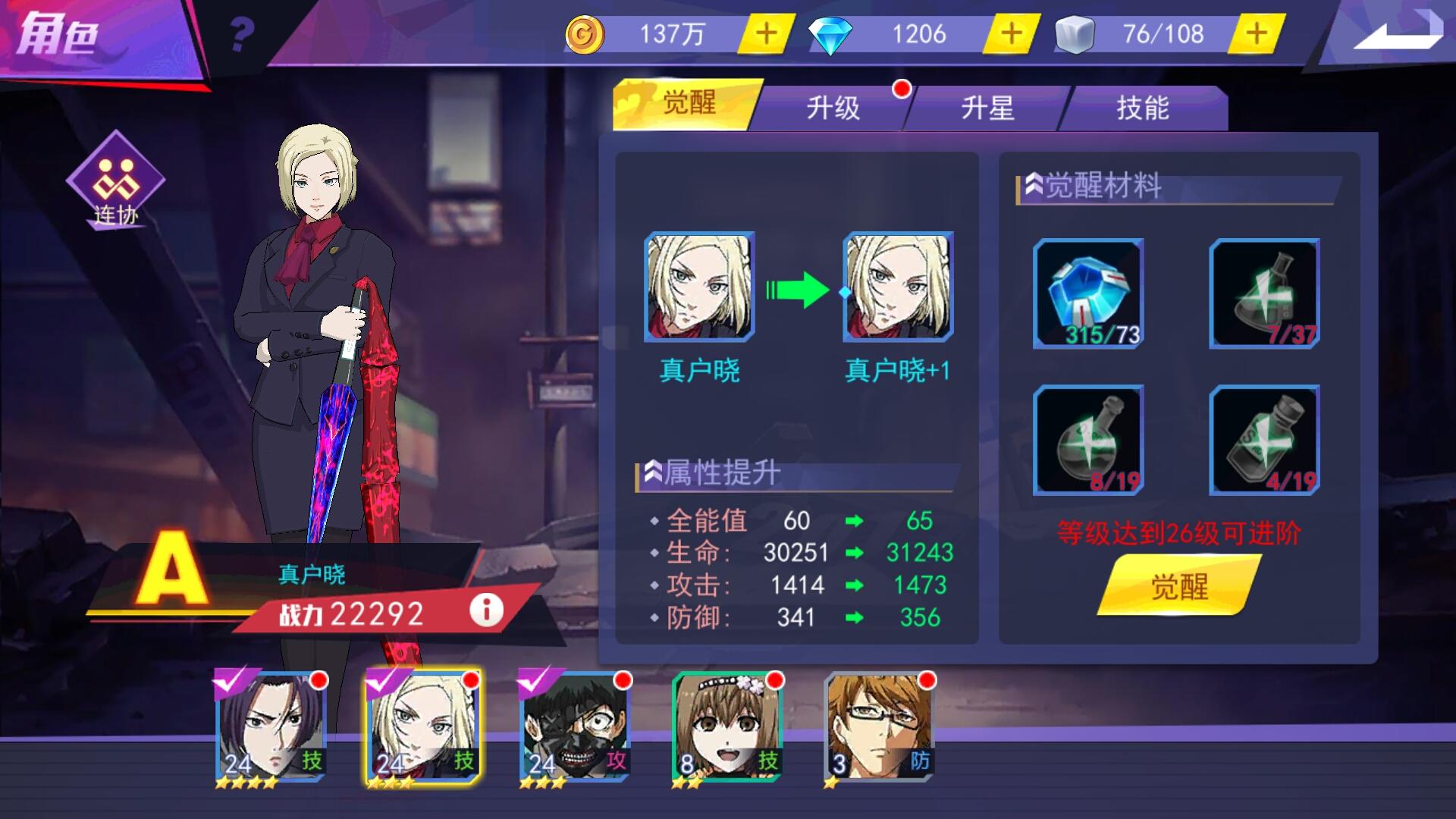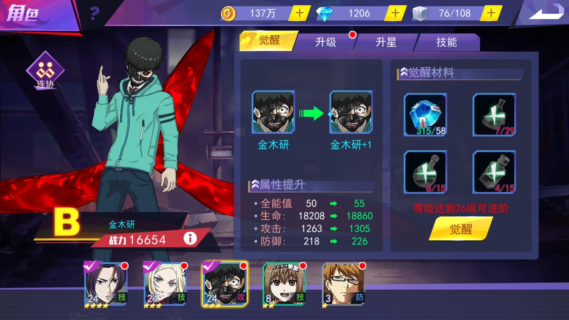 我金木这么弱?什么时候出白发金木?这太弱了,不想玩了,这2个搜查官比金木强这么多?这属性面板看不下去,同样是3星,等出了白发金木再玩吧,