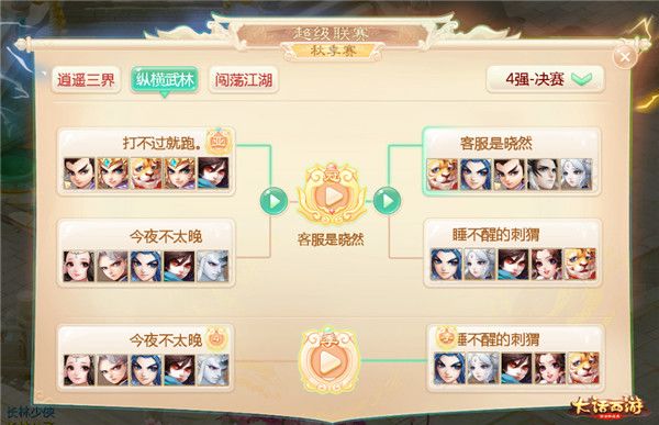 群雄逐鹿,精彩再续!大话手游龙争虎斗超级联赛·秋季赛已在上周末正式结束,各个组别冠军队伍已正式出炉,现在可在大话手游游戏内以及超级联赛官网查看冠军名次和奖励详情,前往游戏中进入“录像大厅”选择“超级联赛”,即可查看精彩比赛回放,感受冠军登顶一刻的巅峰激情!