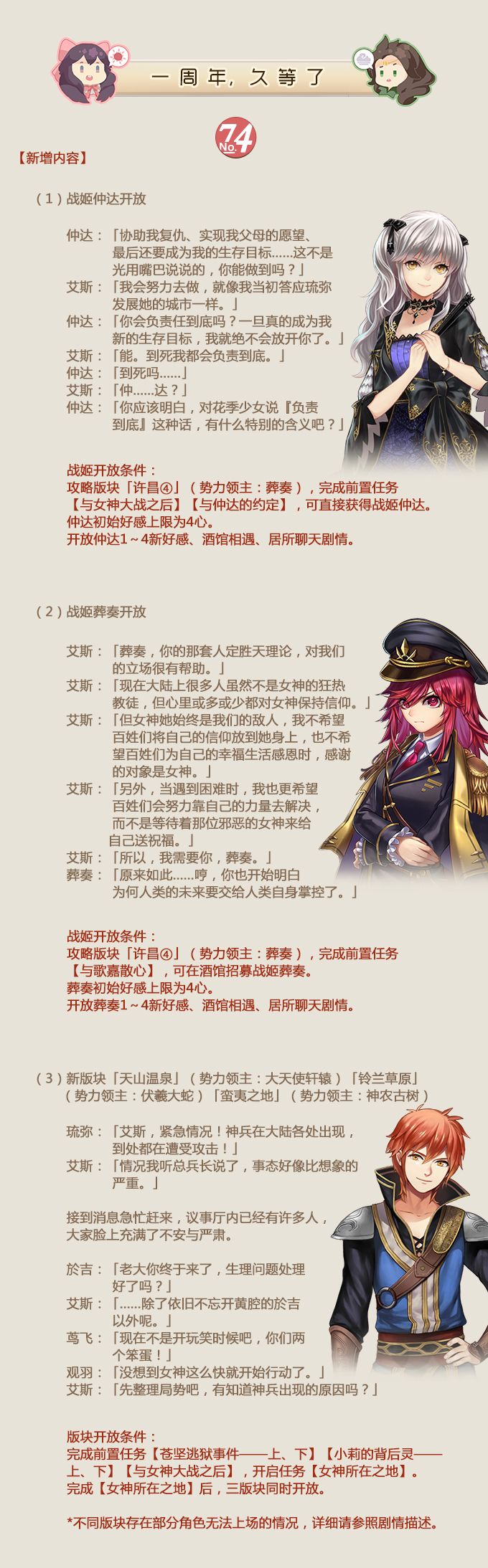 战姬仲达开放招募!福利满满周年庆!姬魔恋战纪1月24日更新公告!