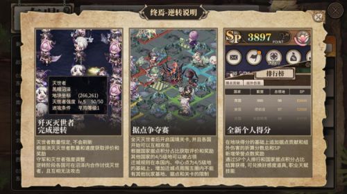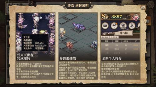 ② 狩猎线排行榜内容调整为:SP个人排行、据点贡献排行、异兽伤害排行和联盟排行,其中SP个人排行将在世界线结算时,对前200名的引导者发放荣誉点奖励。