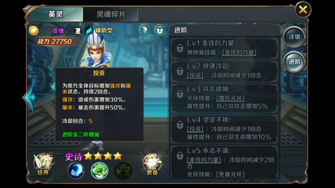 为何每个属性都要有?因为无论BOSS还是其他英灵都会有不同的属性,如果你没有在中期培养各种属性会很吃亏。特别在元素之战中你不可能每次都依赖好友给予的一个英灵,到了困难的级别,你必须自己拥有二到三个培养完全的对应属性英灵。在已经做好这样的打算的时候,你多出的英灵才能分解,否则会得不偿失。