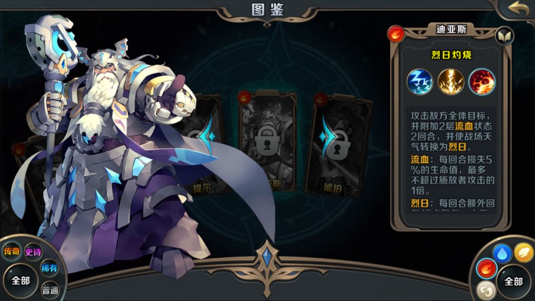 我们来看看更为强势的火传奇队。水提尔就不说了,很好的传奇肉盾,帮助其三位火属性队友站场。火迪亚斯就是个极端的火性辅助,一个烈日灼烧每回合回复15点怒气,且火系伤害提高40%。他必须先手,作为辅助也必须放弃其他属性,要堆速度。一旦他起手,火伊芙琳以惊人的速度先于对手的水莉莉丝(护盾技能),放出二技能的高伤害,容易把艾尔、独角兽能凑队的二、三星给直接秒掉,也能给其他英灵重伤。之后火龙的技能在给予对手流血同时,也能有不错的输出。毕竟这是不缺怒气的队伍,有两个必杀型英灵是可取的。而面对这支队伍很多人都会想干掉迪亚斯,可惜这伙计堆叠生命后会很肉,而你面对两个输出英灵也会不知该先打谁较好,是非常棘手的队伍。当然,如果对方全水属性,又有两个以上传奇英灵撑场应该能够破局。