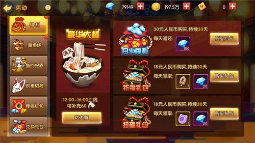 豪华大餐,体力助阵刷图升级