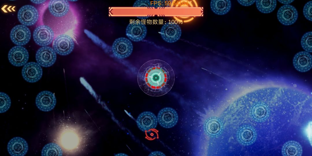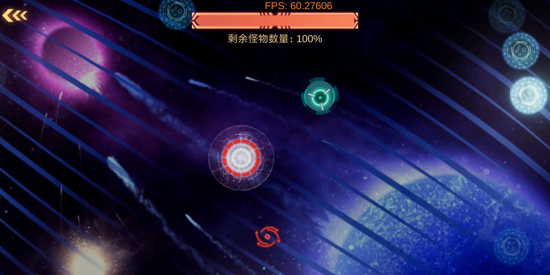 我来简单介绍一下游戏的操作,靠双指点击屏幕实现切换不同的2个游戏场景,利用点击屏幕来实现操控游戏内小球的冲撞操作,通过小球冲撞来攻击敌方避免其靠近基地,以免基地扣血。基地的血条是围绕基地外围的环形红色条状物。