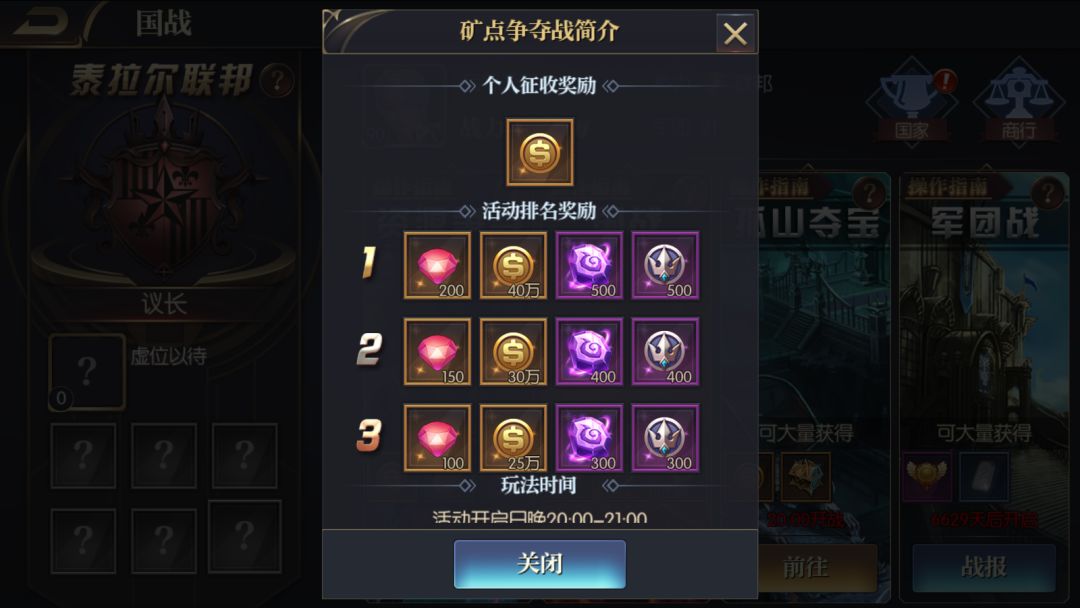 活动结束后根据己方占领矿点总积分排名。
