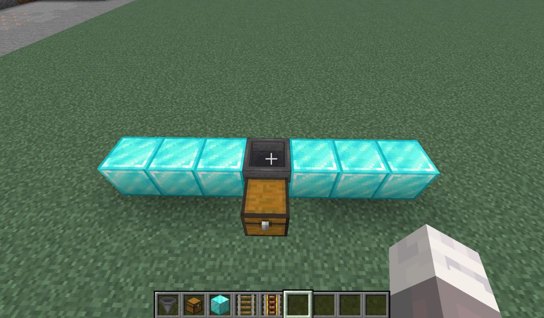 首先如图放上漏斗、箱子和任意方块