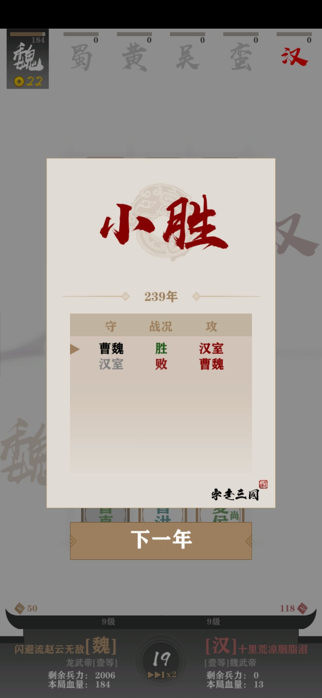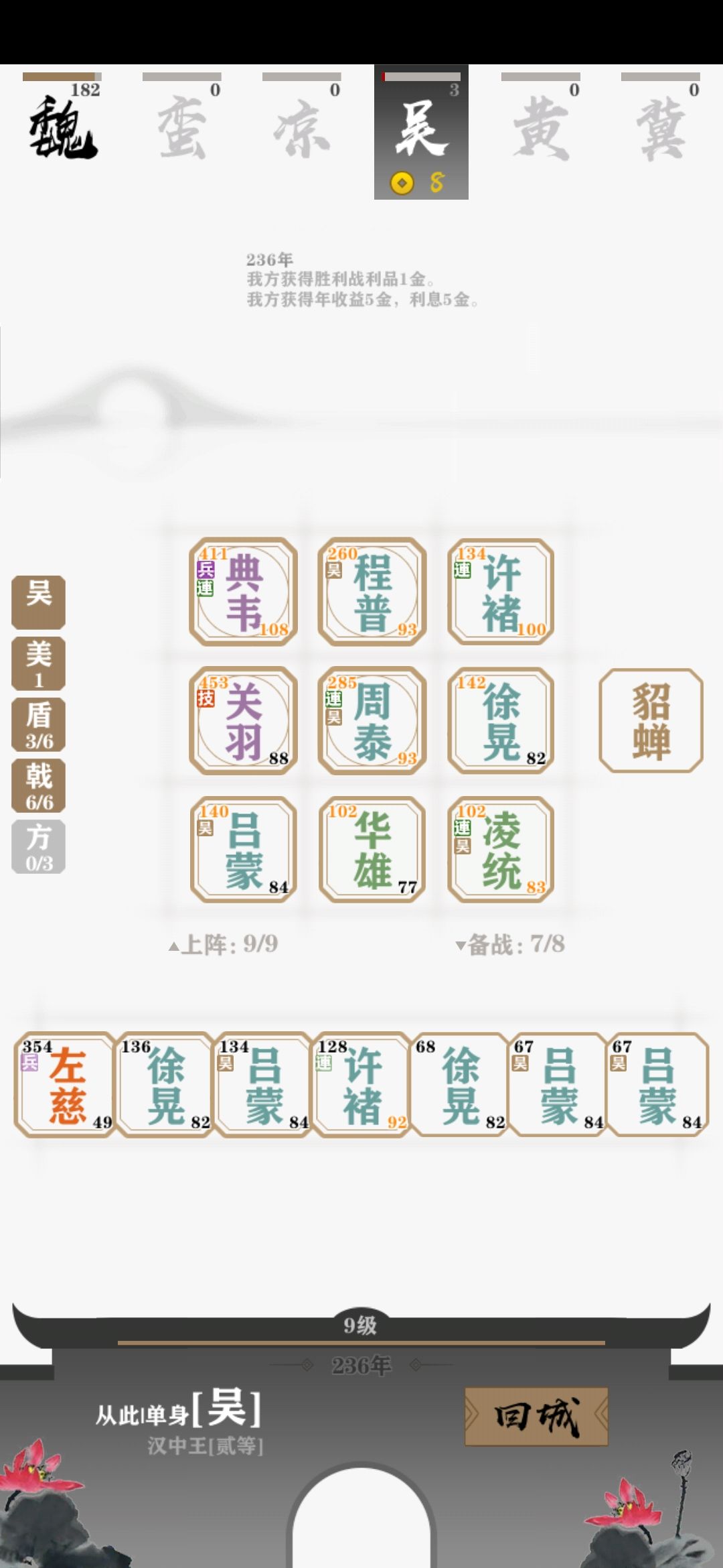 先说明一下前提,针对这个模式,只有过了秋风五丈原(234年)才能定性为后期期(一般来说过了秋风这关,再过几年电脑也有六七个三阶了)。荆州(219年)算是中期。