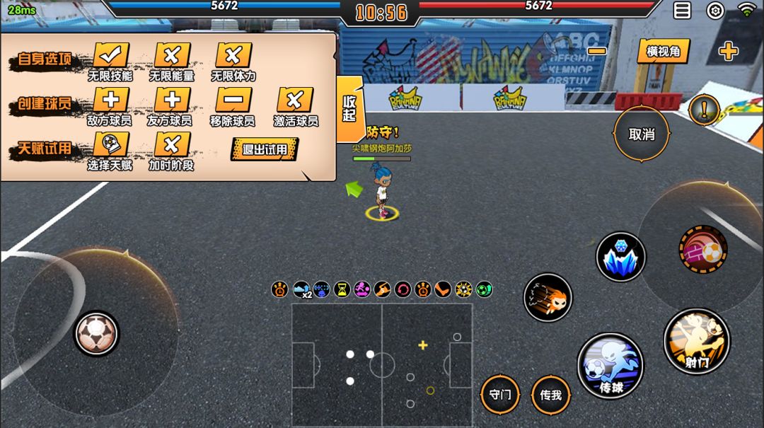 试玩模式与自定义模式有一些功能类似,自身选项当中的无限技能、能量、体力,是为了更好的让大佬们在体验技能时,无需等待那些CD时间或能量问题。球员的的功能是为了能够让大佬们在使用技能时,能够看到作用在敌方或友方时的效果。