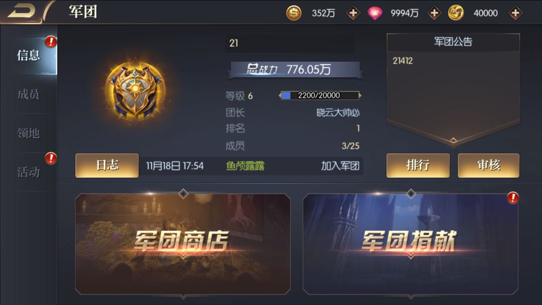 4.军团长和副军团长可以使用宣战功能,参与领地争夺。